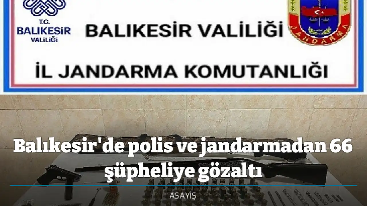 Balıkesir'de polis ve jandarma ekipleri il genelinde yaptıkları ayrı ayrı asayiş operasyonlarında çeşitli suçlardan aranan 66 şahıs gözaltına alınırken, adli makamlara sevk edilen 16 şahıs tutuklandı.