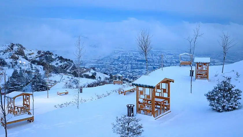 Karla kaplanan Harput'ta gece ışıkları ile görsel şölen