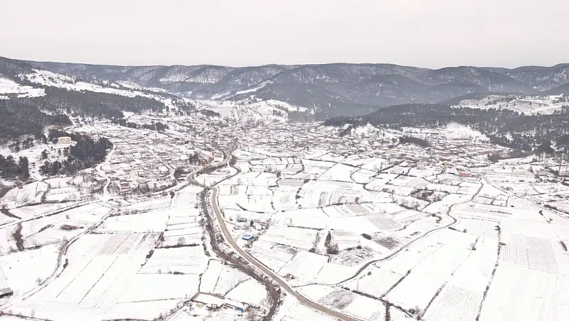 Beyazlara bürünen Gölyazı ve Cumalıkızık havadan böyle görüntülendi