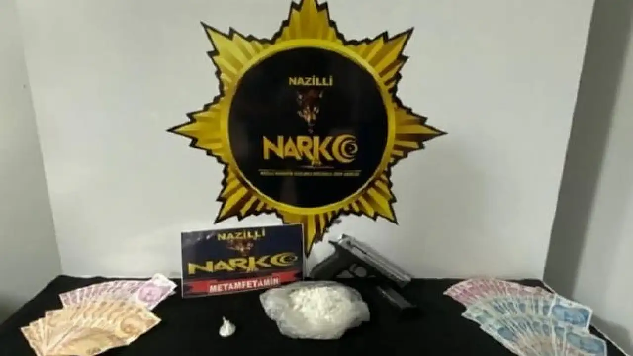 Nazilli polisi ilçede uyuşturucu ve uyuşturucu madde ticaretini engellemeye yönelik çalışmalarına tüm hızıyla devam ediyor. Edinilen bilgiye göre, Nazilli Narkotik Suçlarla Mücadele Grup Amirliği ekipleri yaptığı çalışmalar sonucunda M.B isimli şahsın kentte uyuşturucu madde satışı yaptığını tespit etti. Zehir tacirini takibe alan ekipler operasyon düğmesine bastı. M.B’nin kaldığı evi tespit ederek baskın yapan narkotik polisi, ikamette yaptığı aramada yaklaşık 350 gram metamfetamin olarak tabir edilen uyuşturucu madde, 1 adet tabanca ve tabancaya ait 2 adet mermi ile uyuşturucu madde ticareti geliri olduğu tespit edilen 10 bin 550 TL para ele geçirdi.